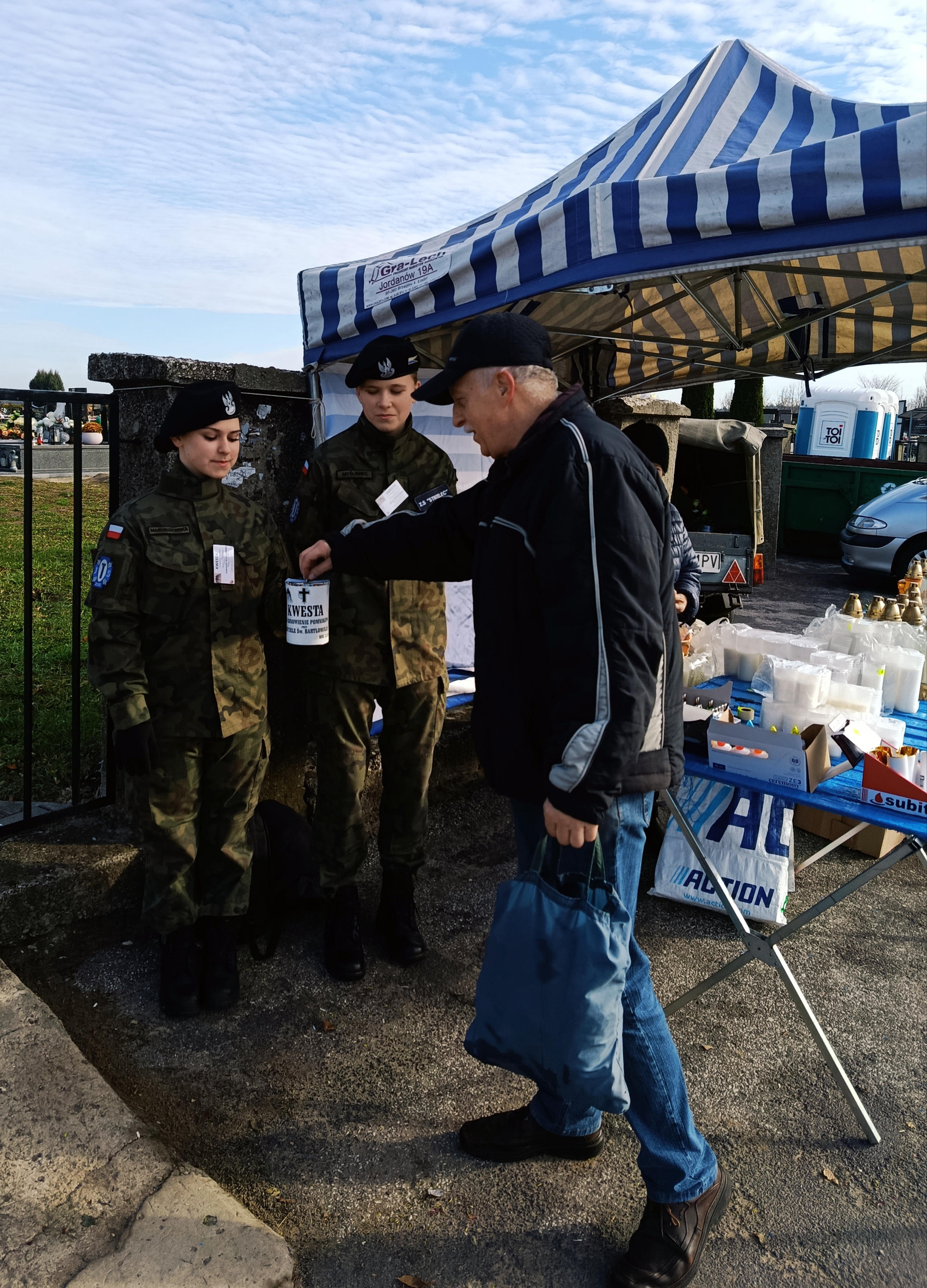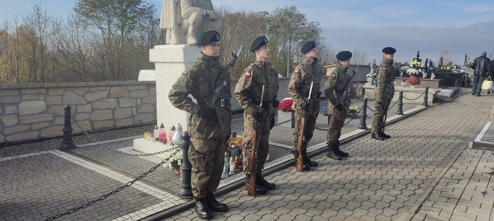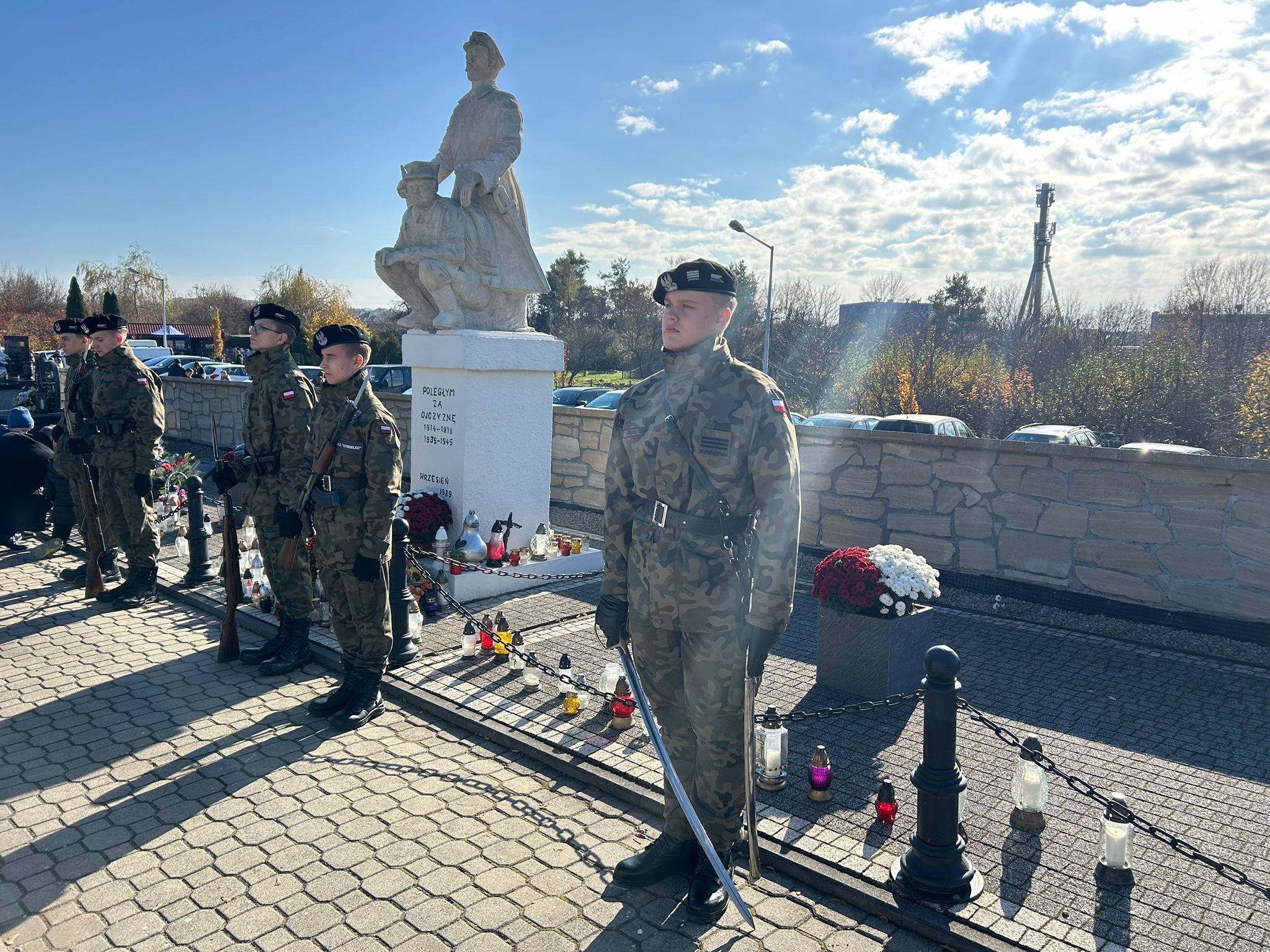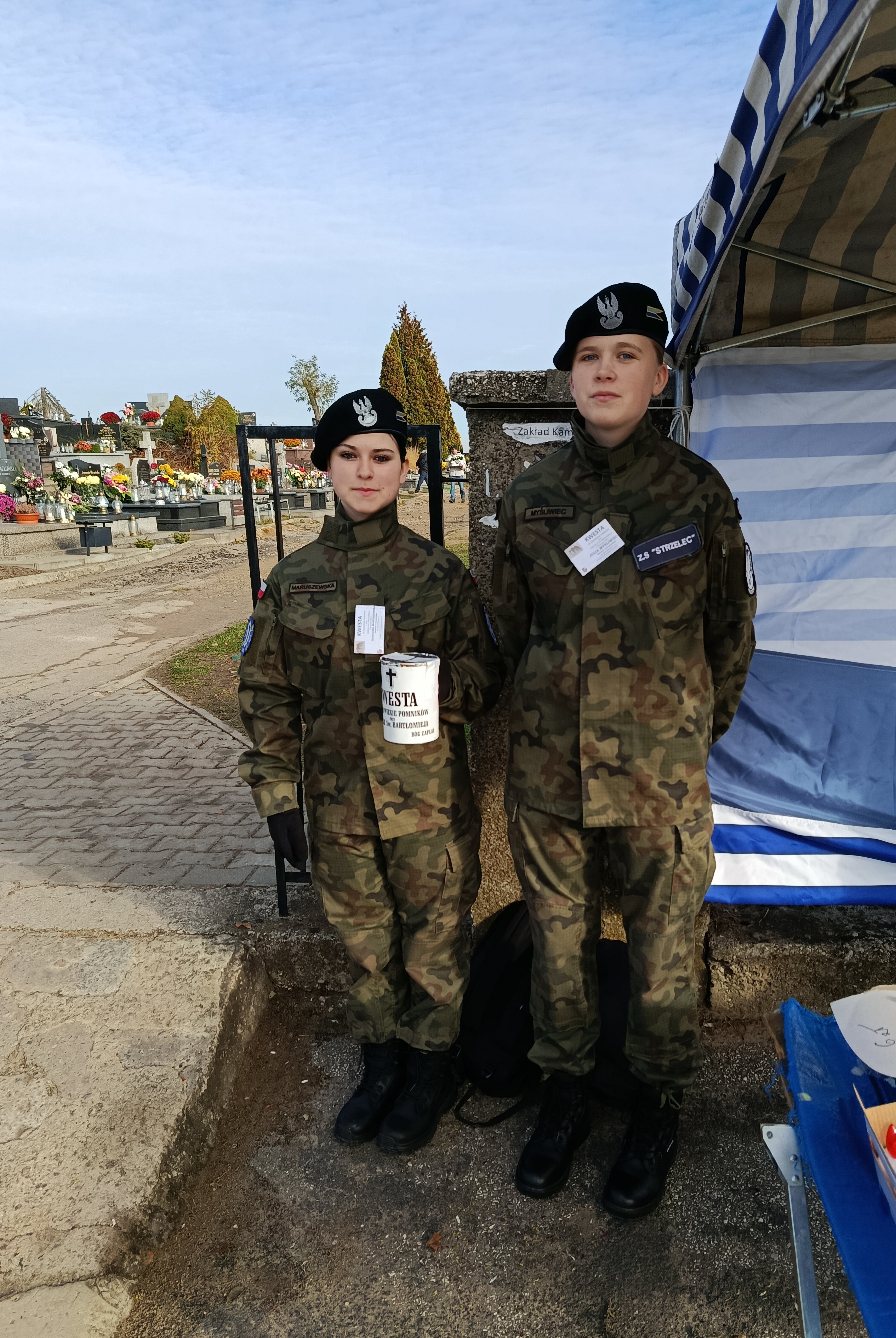 1 listopada, młodzież klas mundurowych oraz członkowie Drużyny Strzeleckiej „Strzelec” JS 2151 im. 2 Pułku Piechoty Legionów uczestniczyli w kweście na rzecz renowacji starych pomników nagrobnych zlokalizowanych na cmentarzu przy kościele pw. św. Bartłomieja w Staszowie. Akcja ratowania zabytkowych nagrobków, co roku, spotyka się ze zrozumieniem i życzliwością ze strony osób odwiedzających groby swoich bliskich . To dzięki ich hojności sukcesywnie przybywa odnowionych nagrobków. Organizatorem kwesty było Stowarzyszenie Pro Civitas na czele z honorowym członkiem stowarzyszenia – Adamem Kozińskim - pomysłodawcą akcji oraz Liceum Ogólnokształcące im.ks.kard. Stefana Wyszyńskiego w Staszowie. Podczas tegorocznej kwesty zebrano 4 149 zł 62 gr. Organizatorzy serdecznie dziękują wszystkim ofiarodawcom. Ponad to uczniowie zrzeszeni w Związku Strzeleckim: M. Gacoń, B. Fabia, D. Chara, F. Mesek, M. Tarka pełnili wartę przed Grobem Nieznanego Żołnierza. Dowódcą warty był drużynowy ZS Piotr Cieniek. Natomiast opiekunowie: p. Ewa Markiewicz-prezes Stowarzyszenia Pro Civitas, inspektor ZS M. Morawski, brygadier ZS E. Drózd, chorąży ZS M. Poziomek oraz płk.rez. WP A. Nenutil, złożyli kwiaty i oddali hołd poległym żołnierzom. Serdeczne podziękowania składamy p. Bernardzie Mysłek z Suchowoli, która rokrocznie przekazuje kwiaty, które składane są na grobie poległych.