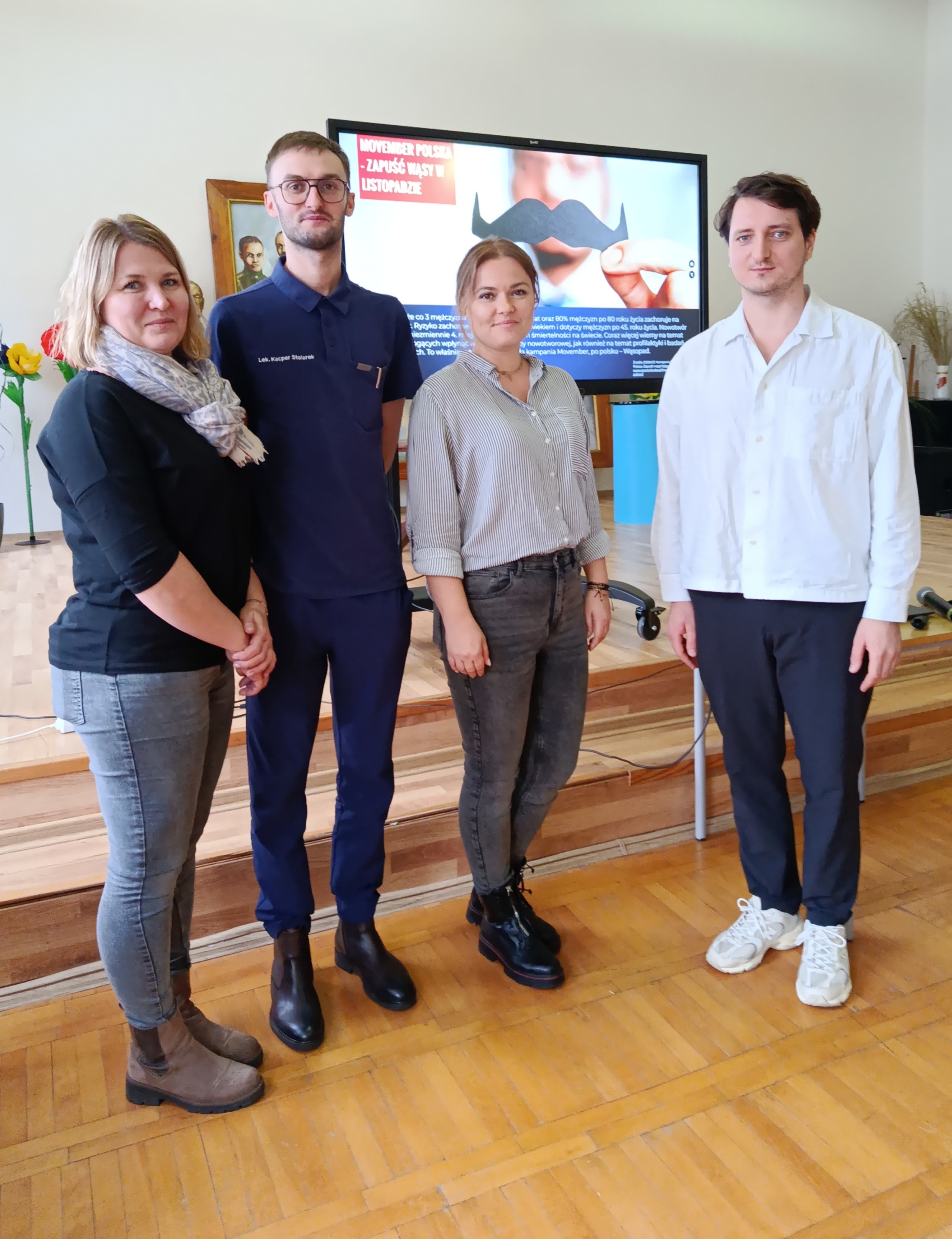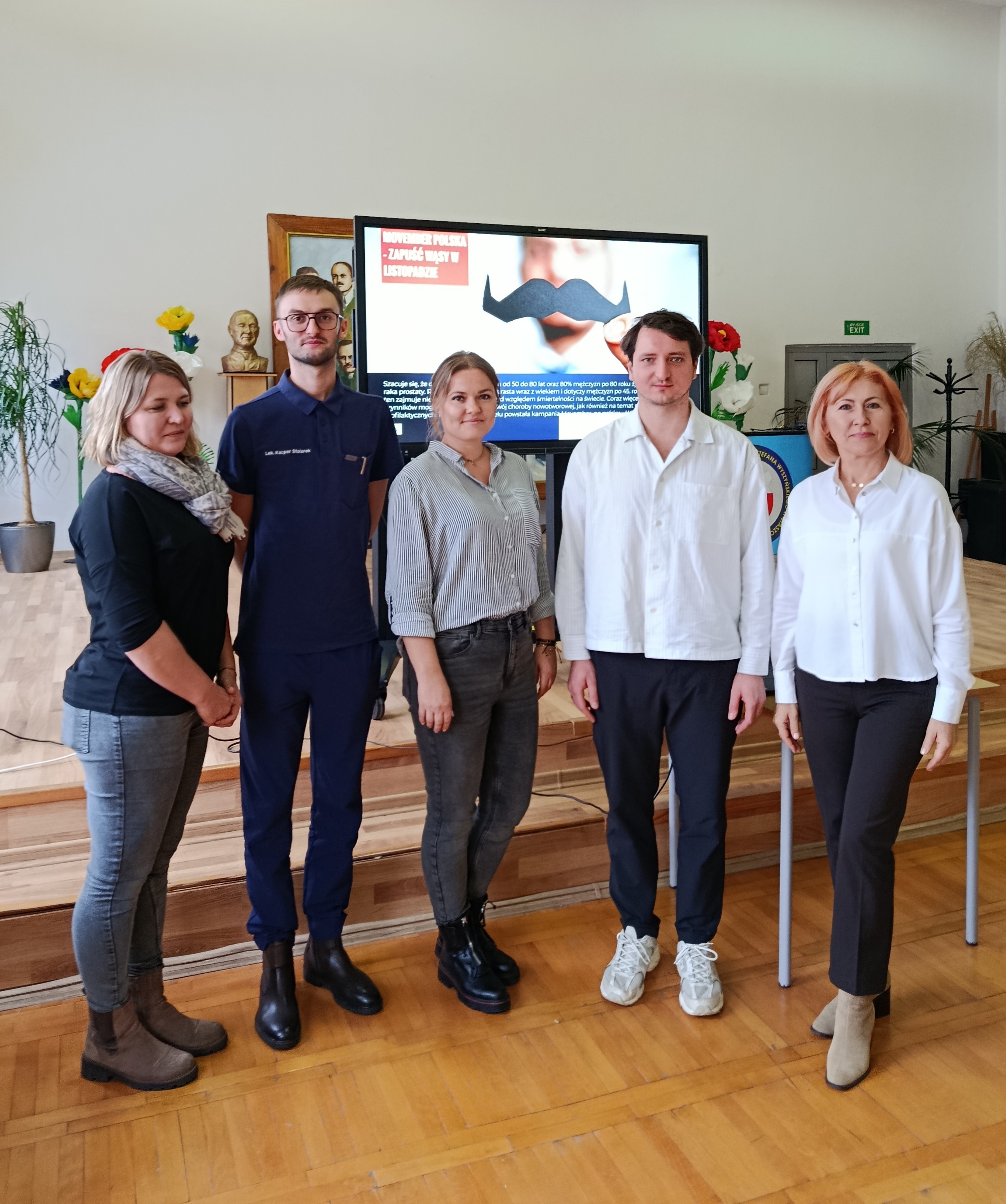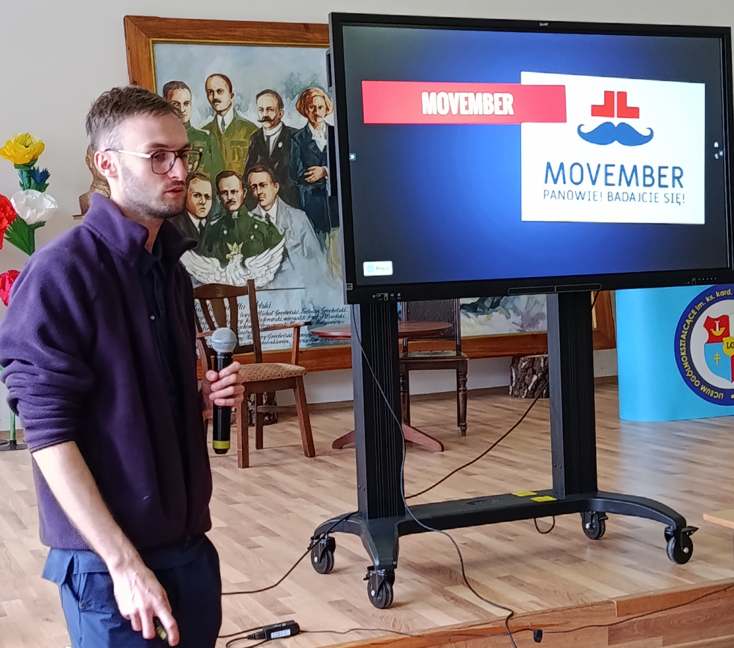 Movember - to międzynarodowa kampania społeczna, której celem jest podnoszenie świadomości o nowotworach narządów męskich oraz zachęcanie do regularnych badań . Ponadto kampania zachęca mężczyzn do zapuszczania wąsów jako symbolu wsparcia i profilaktyki. W listopadzie dwukrotnie gościliśmy lekarzy z Oddziału Urologii: lek. Szymona Kowalskiego i lek. Kacpra Stolarka, którzy bardzo profesjonalnie przeprowadzili prelekcje na temat szeroko rozumianej profilaktyki układu moczowego, w tym profilaktyki chorób nowotworowych. Lekarze zachęcali młodych mężczyzn do regularnego samobadania, badań PSA oraz do wizyt u urologa (w razie potrzeby). Widząc duże zainteresowanie problemem, niewątpliwie będziemy kontynuować działania zwiększające świadomość nowotworów narządów męskich.