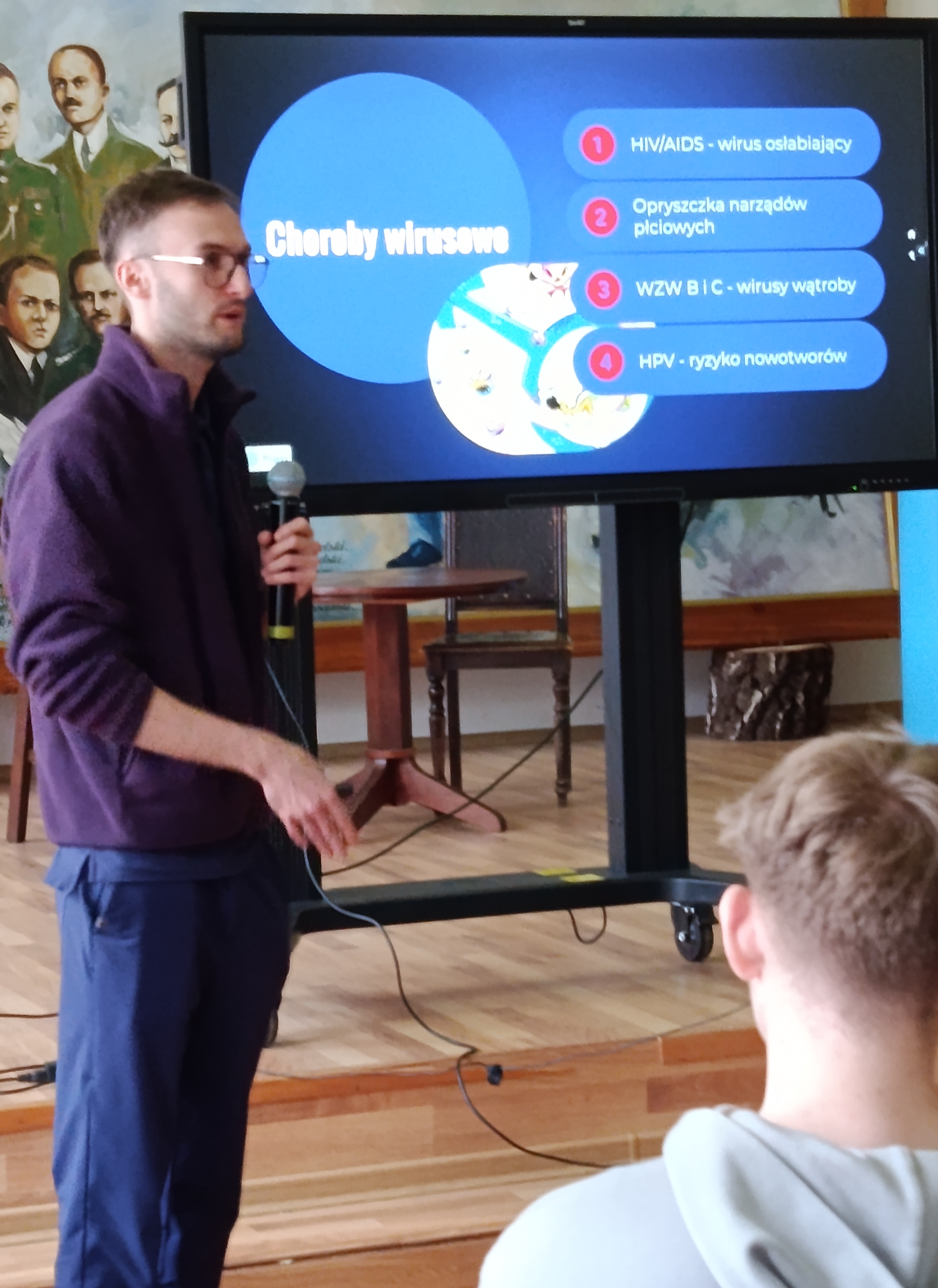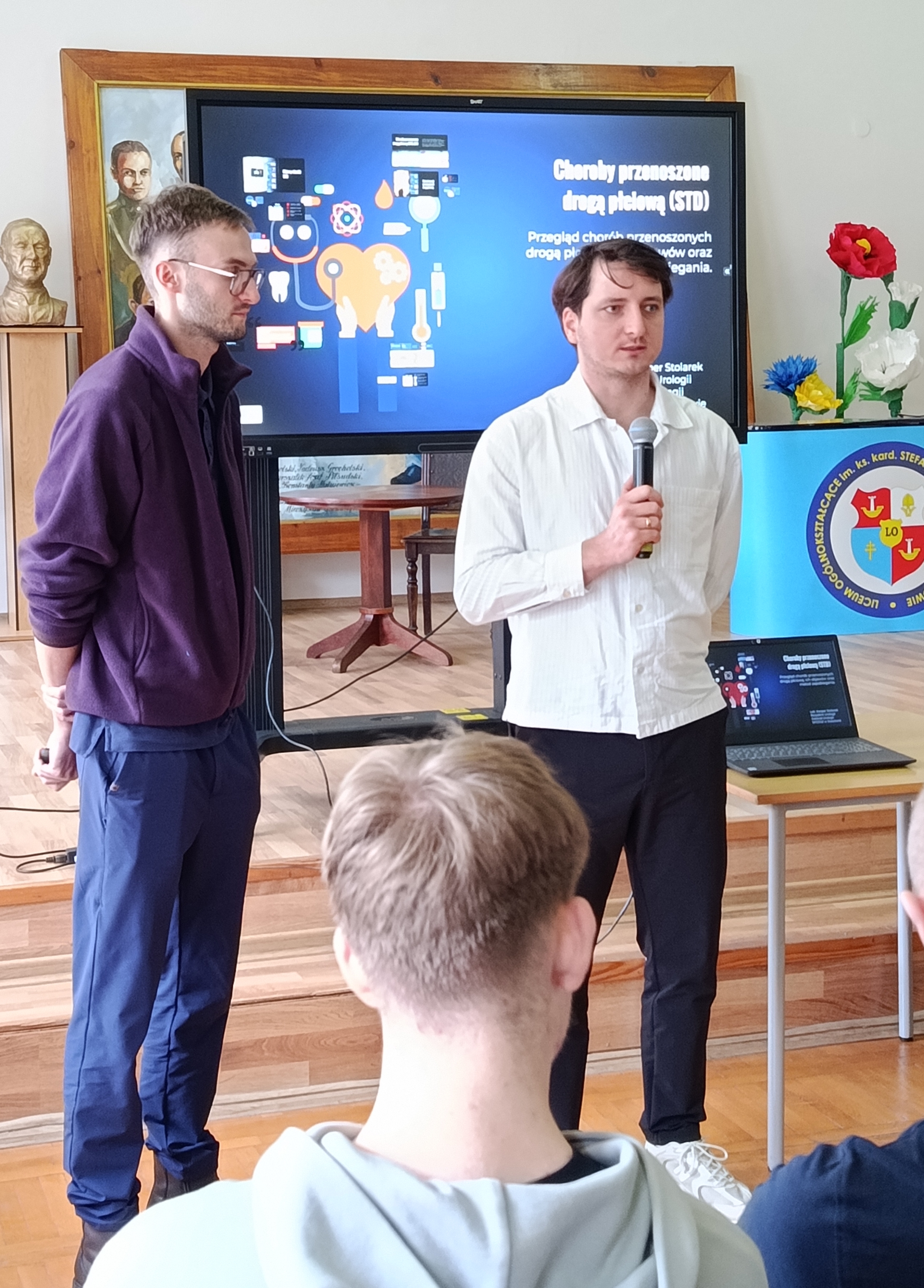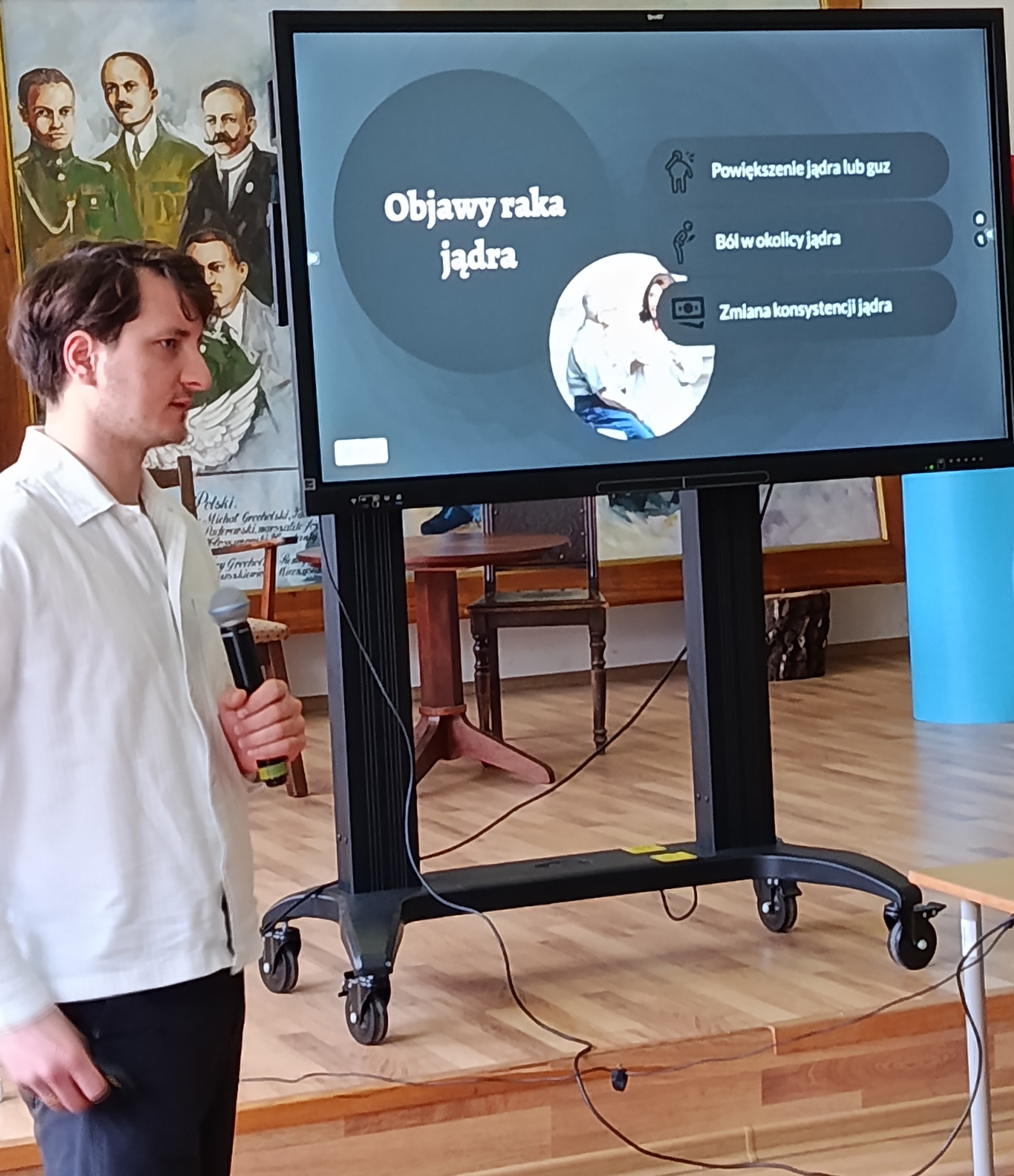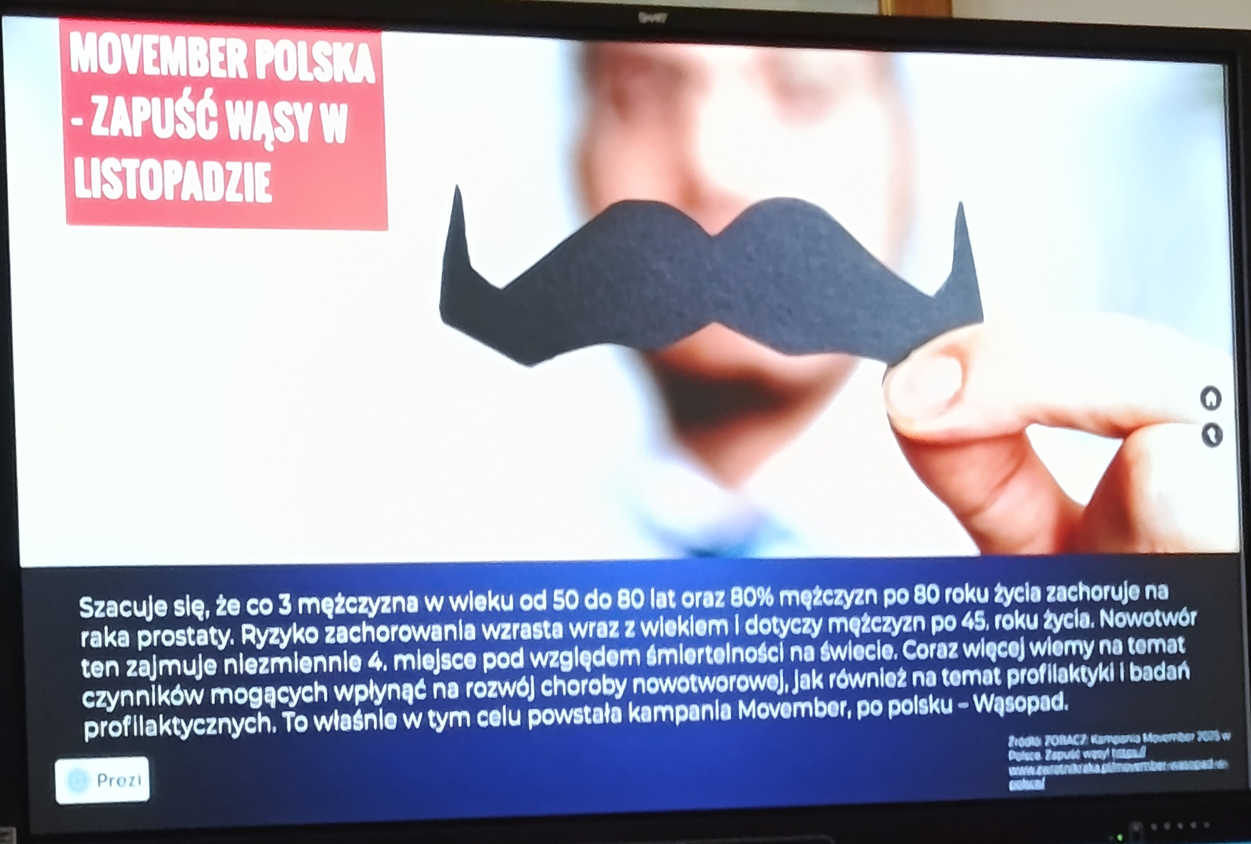 Movember - to międzynarodowa kampania społeczna, której celem jest podnoszenie świadomości o nowotworach narządów męskich oraz zachęcanie do regularnych badań . Ponadto kampania zachęca mężczyzn do zapuszczania wąsów jako symbolu wsparcia i profilaktyki. W listopadzie dwukrotnie gościliśmy lekarzy z Oddziału Urologii: lek. Szymona Kowalskiego i lek. Kacpra Stolarka, którzy bardzo profesjonalnie przeprowadzili prelekcje na temat szeroko rozumianej profilaktyki układu moczowego, w tym profilaktyki chorób nowotworowych. Lekarze zachęcali młodych mężczyzn do regularnego samobadania, badań PSA oraz do wizyt u urologa (w razie potrzeby). Widząc duże zainteresowanie problemem, niewątpliwie będziemy kontynuować działania zwiększające świadomość nowotworów narządów męskich.