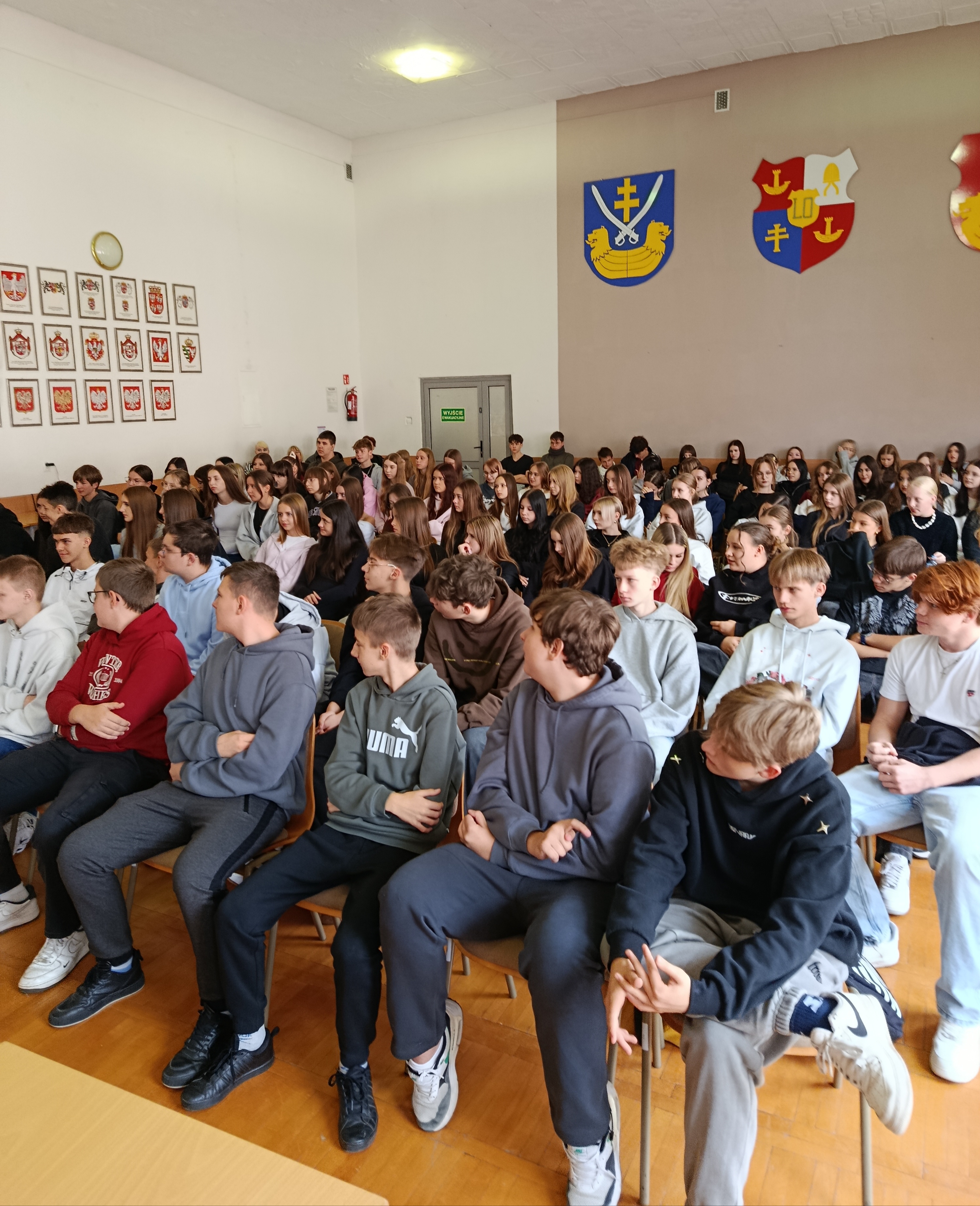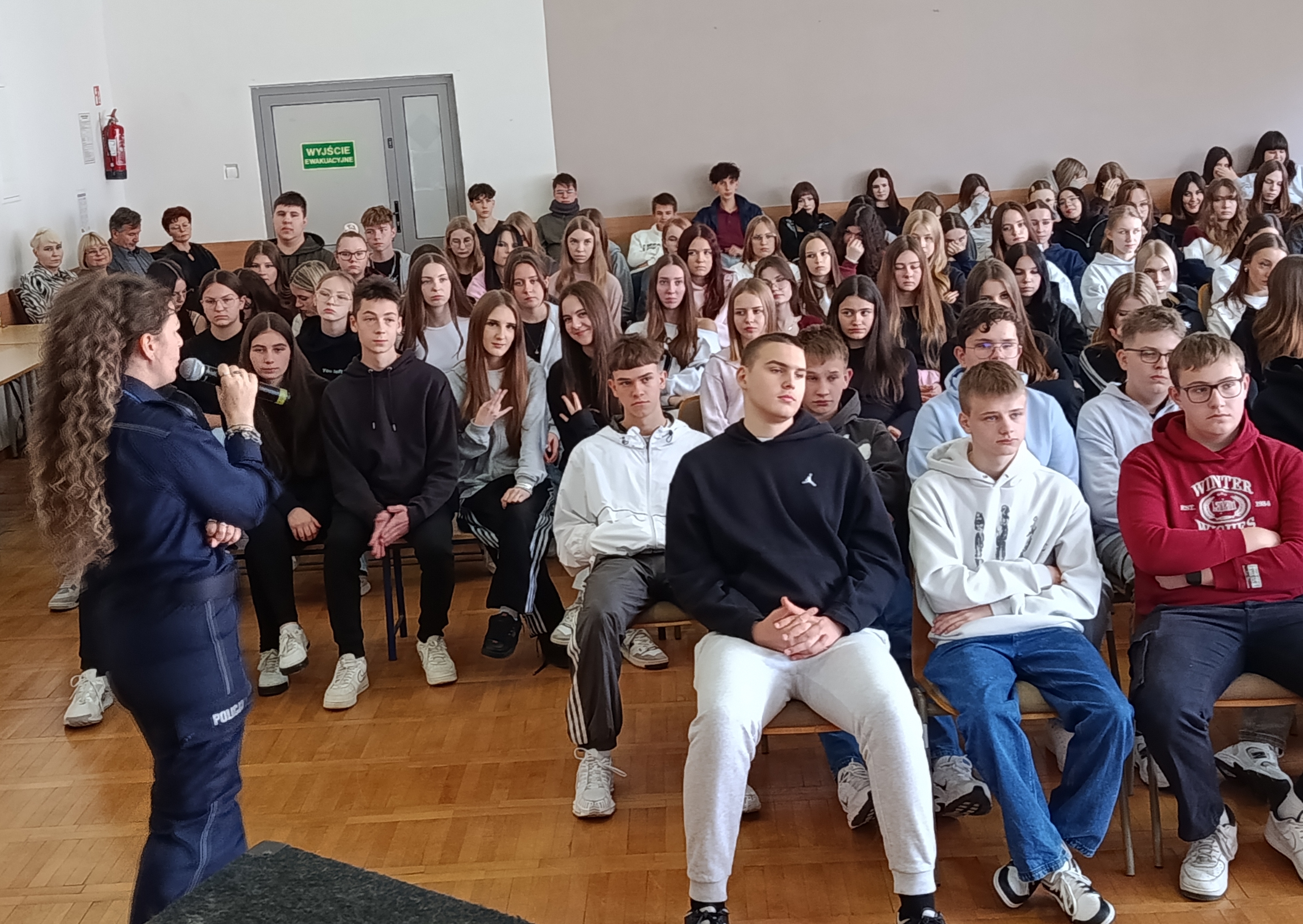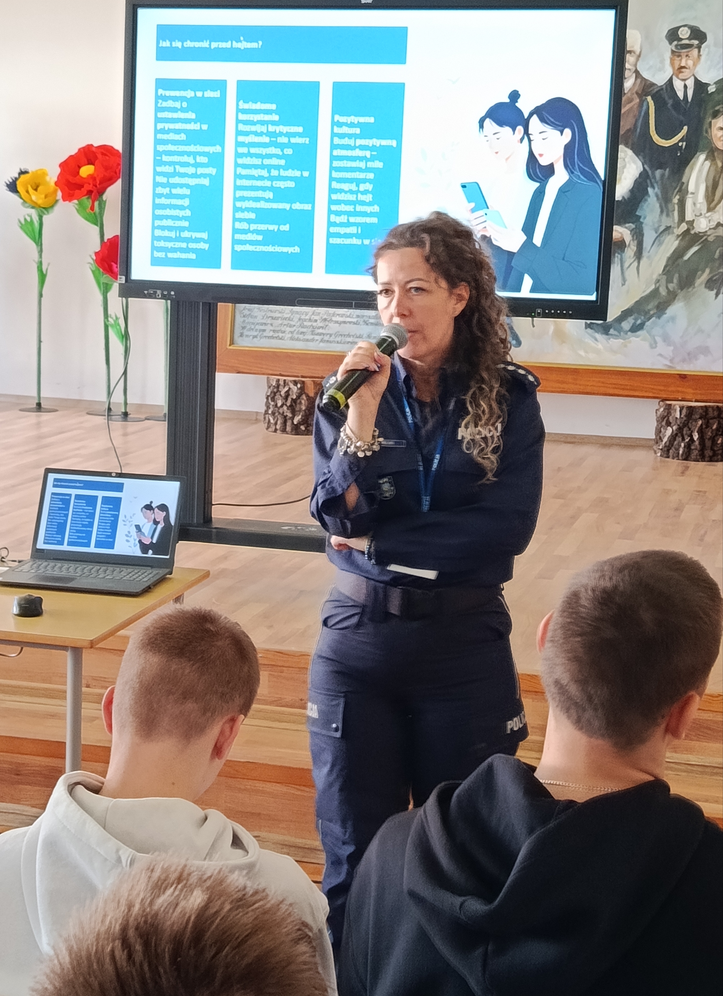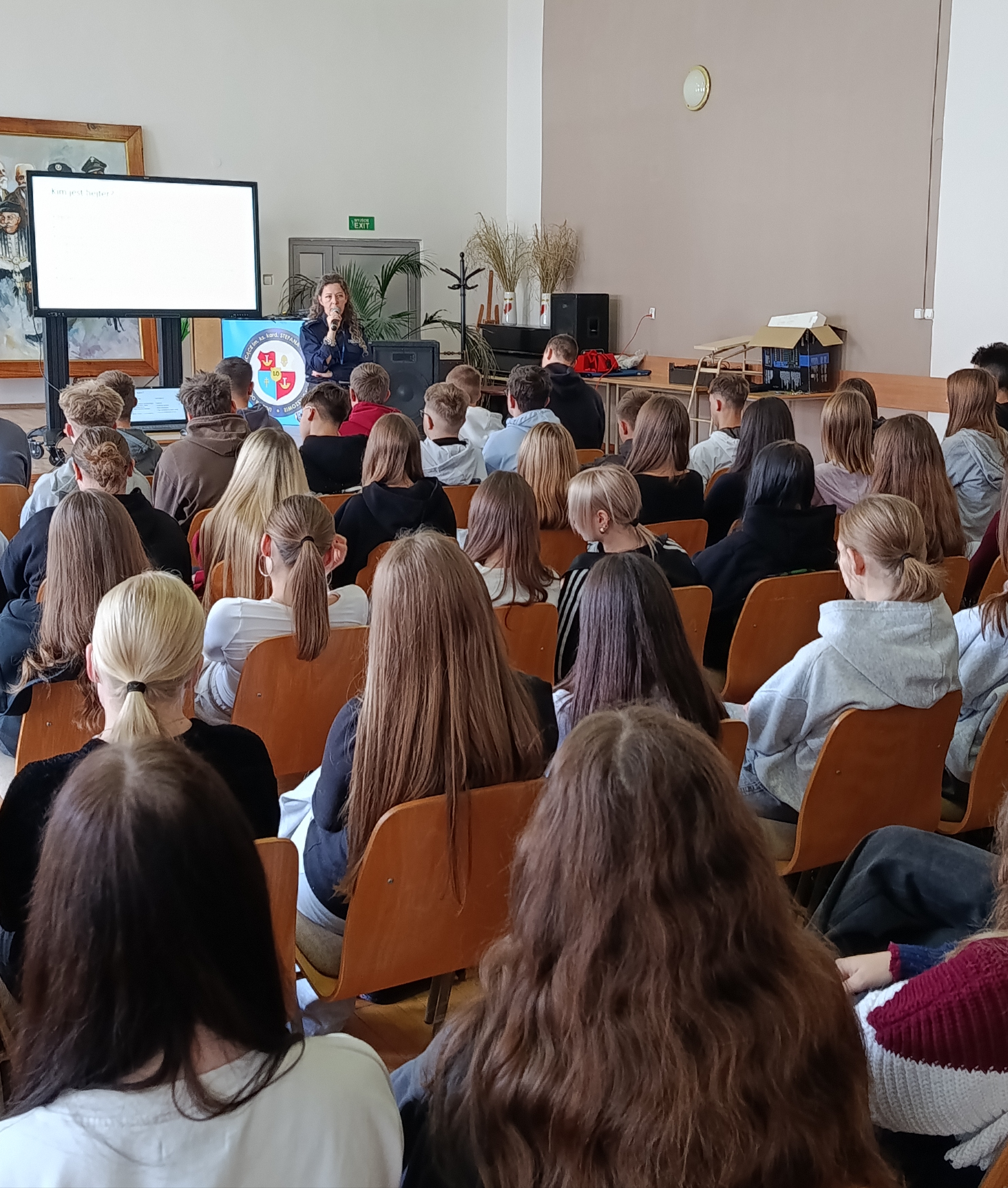 W ramach kampanii społecznej „NIE HEJTUJĘ-MOTYWUJĘ”, młodzież naszej szkoły uczestniczyła w prelekcji, której celem było zwrócenie uwagi na zjawisko cyberprzemocy rówieśniczej, hejtu i mowy nienawiści. W związku z tym w murach naszej szkoły gościliśmy funkcjonariuszy z KPP w Staszowie w osobach: asp. szt. Agatę Kwiecień i st. asp. Marcina Masternaka. W tym gronie, po raz kolejny, rozważaliśmy kwestię bezpieczeństwa w cyberprzestrzeni, która aktualnie jest wirtualnym środowiskiem funkcjonowania młodzieży. Funkcjonariusze Policji, poruszyli również kwestię bezpiecznego dostępu młodzieży do zasobów internetowych oraz starali się wzbudzić czujność młodych słuchaczy w kierunku ochrony informacji, urządzeń i zasobów cyfrowych.